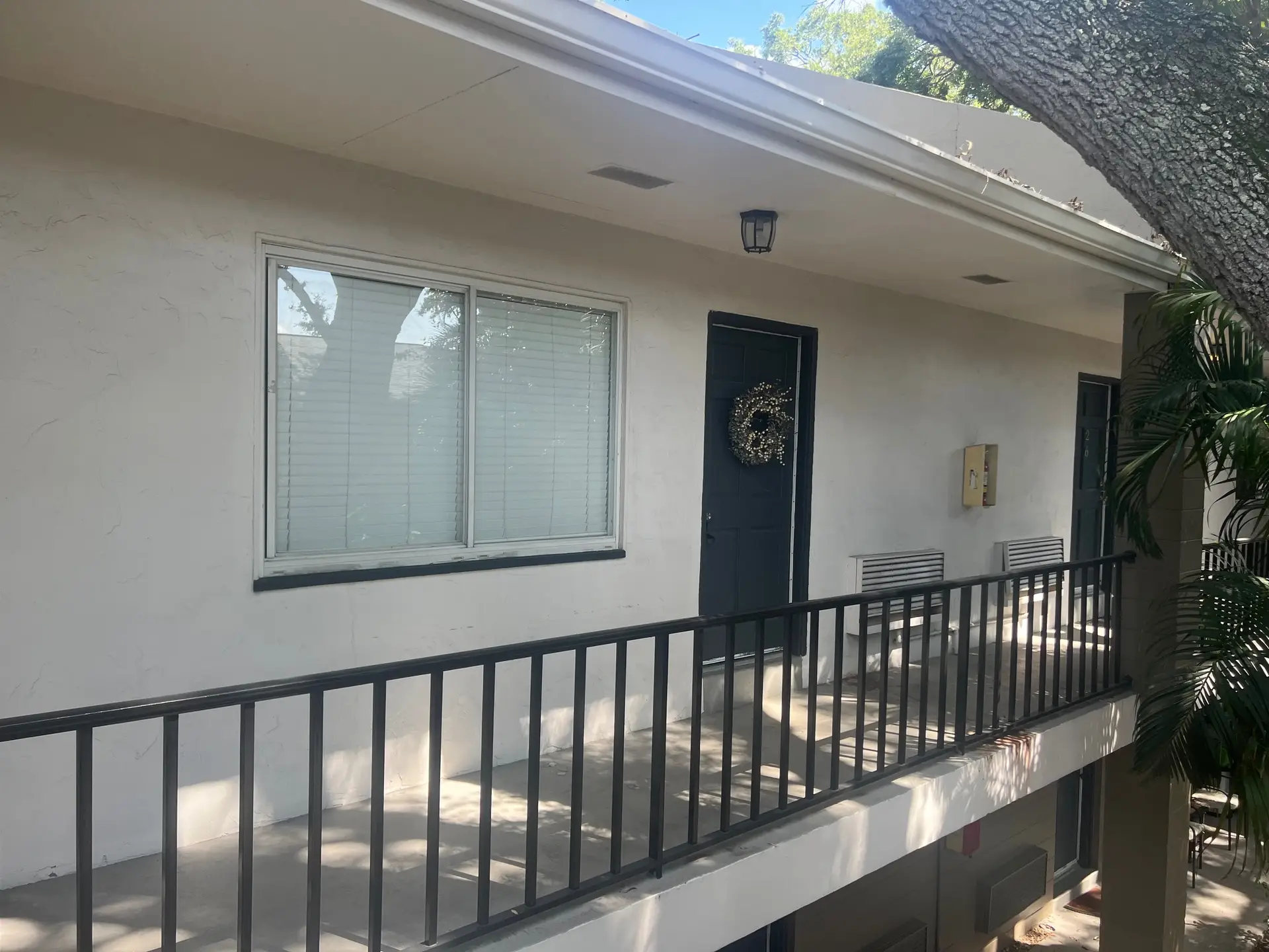 courtyard with mature trees and benches. Corner work-from-home desk area enjoys garden views. One assigned parking space included; visitor parking available. Key features Renovated 1BR/1BA; light-filled, open plan Updated kitchen + in-unit washer/dryer combo Media wall, banquette seating and fluted wood accents Semi-furnished (see inclusions) Courtyard views; dedicated WFH nook 1-year lease, small pets allowed, water included